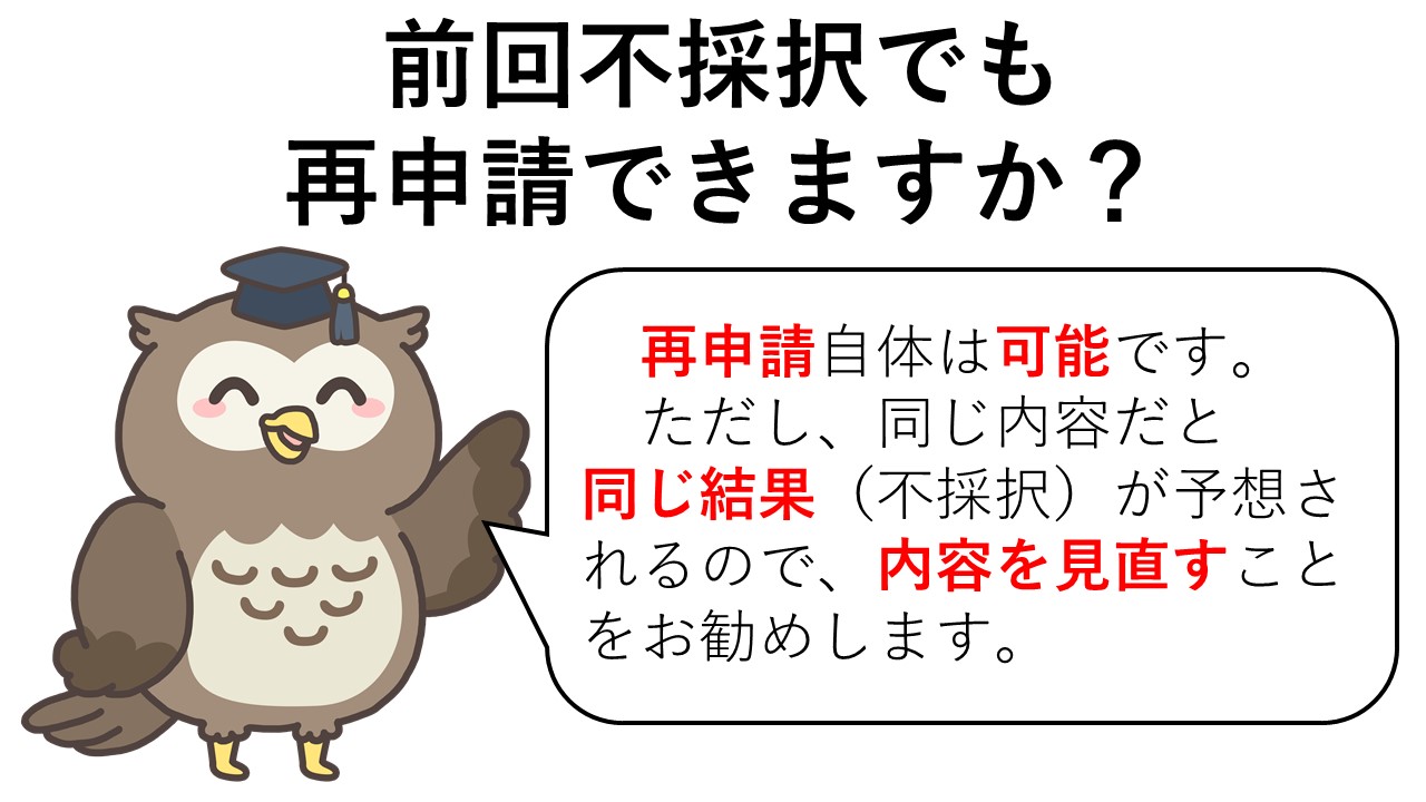 ただし、同じ申請内容では、同じ結果(不採択)が予想されます。