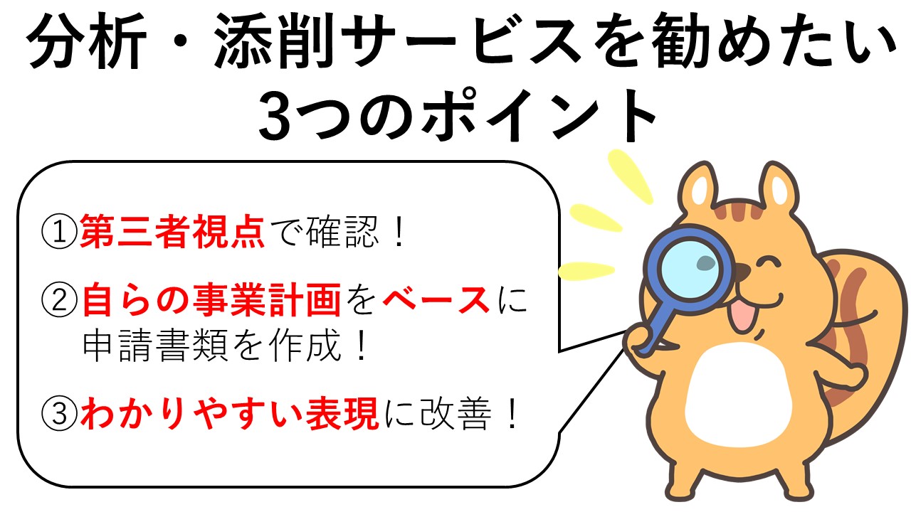 提出予定の申請書を分析・検討のうえ、「改善策」をご提案します。