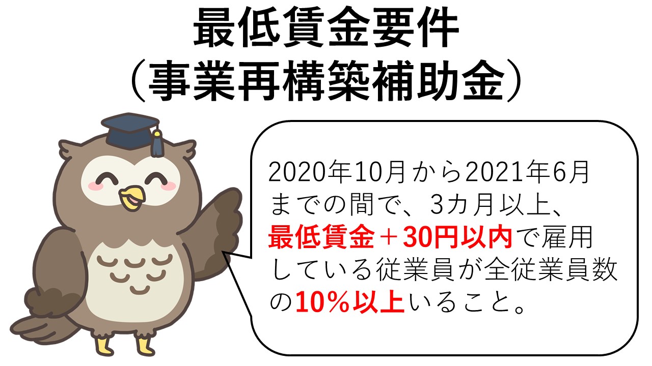2020年10月から2021年6月までの間で、3か月以上最低賃金+30円以内で雇用している従業員が全従業員数の10%以上いること