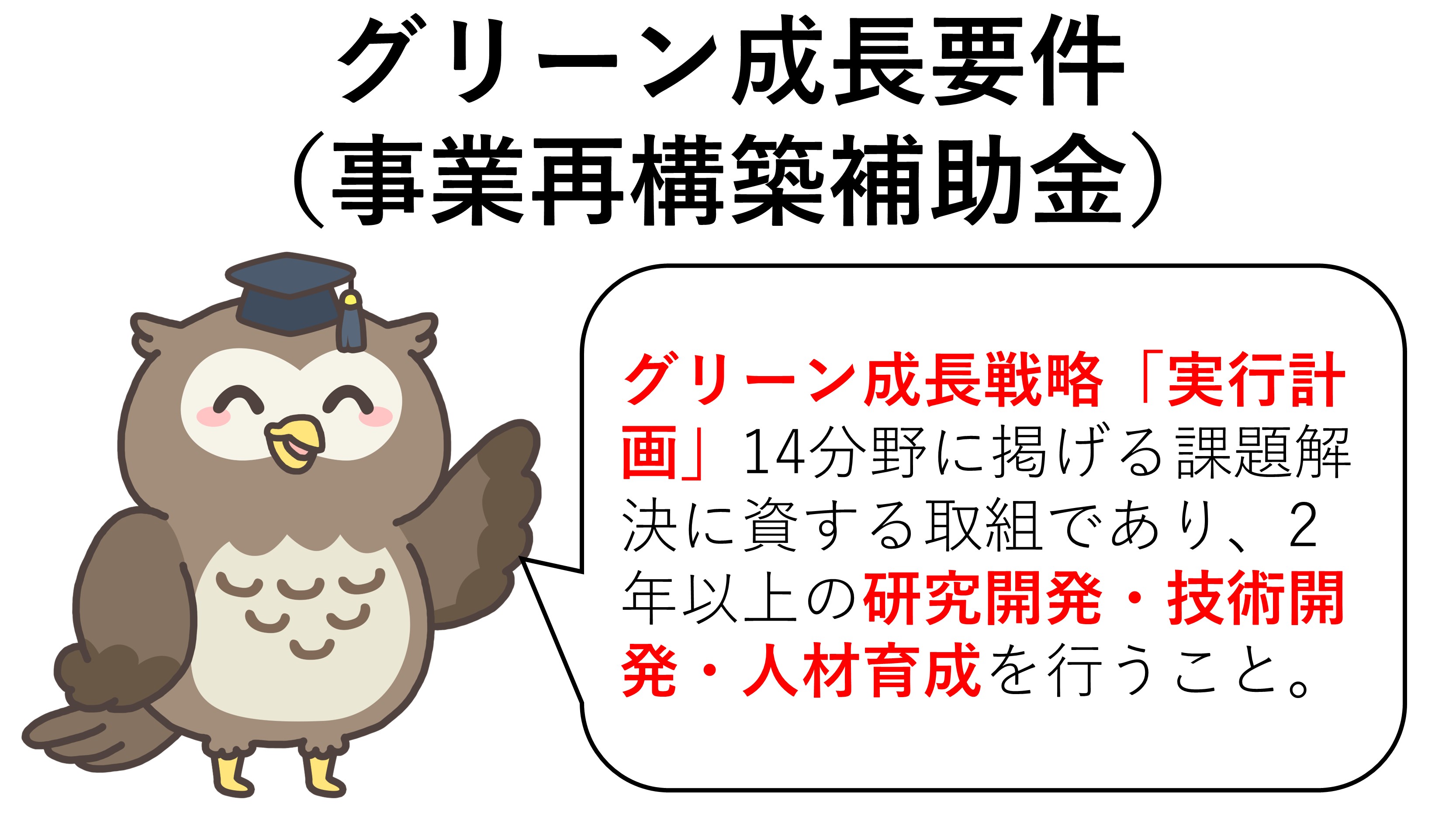 グリーン成長戦略「実行計画」14 分野に掲げられた課題の解決に資する取組であって、その取組に関連する 2 年以上の研究開発・技術開発又は従業員の一定割合以上に対する人材育成をあわせて行うこと