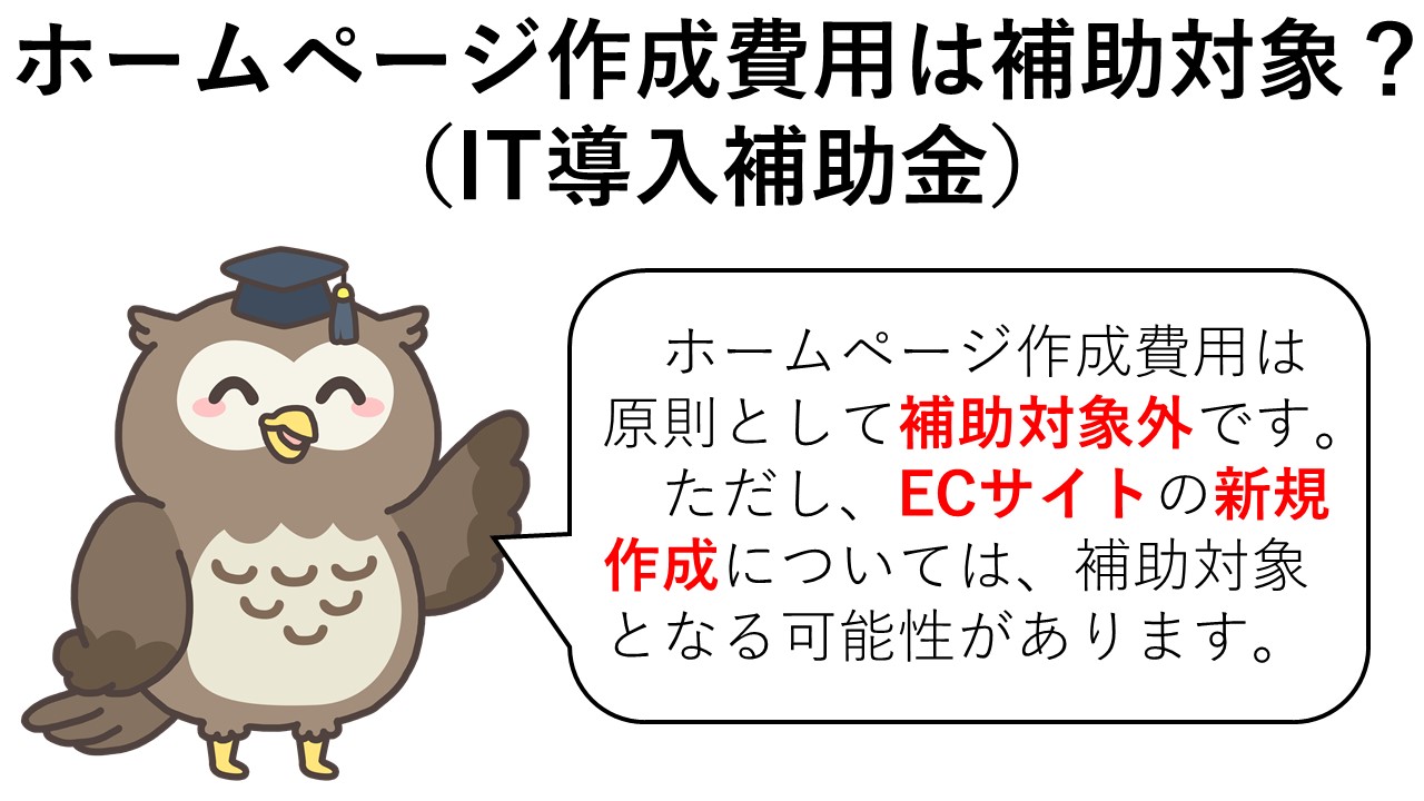 ただし、非対面型ビジネスモデルへの転換を目的とするECサイトの作成(新規作成)については、補助対象となる可能性があります(特別枠/C類型)。