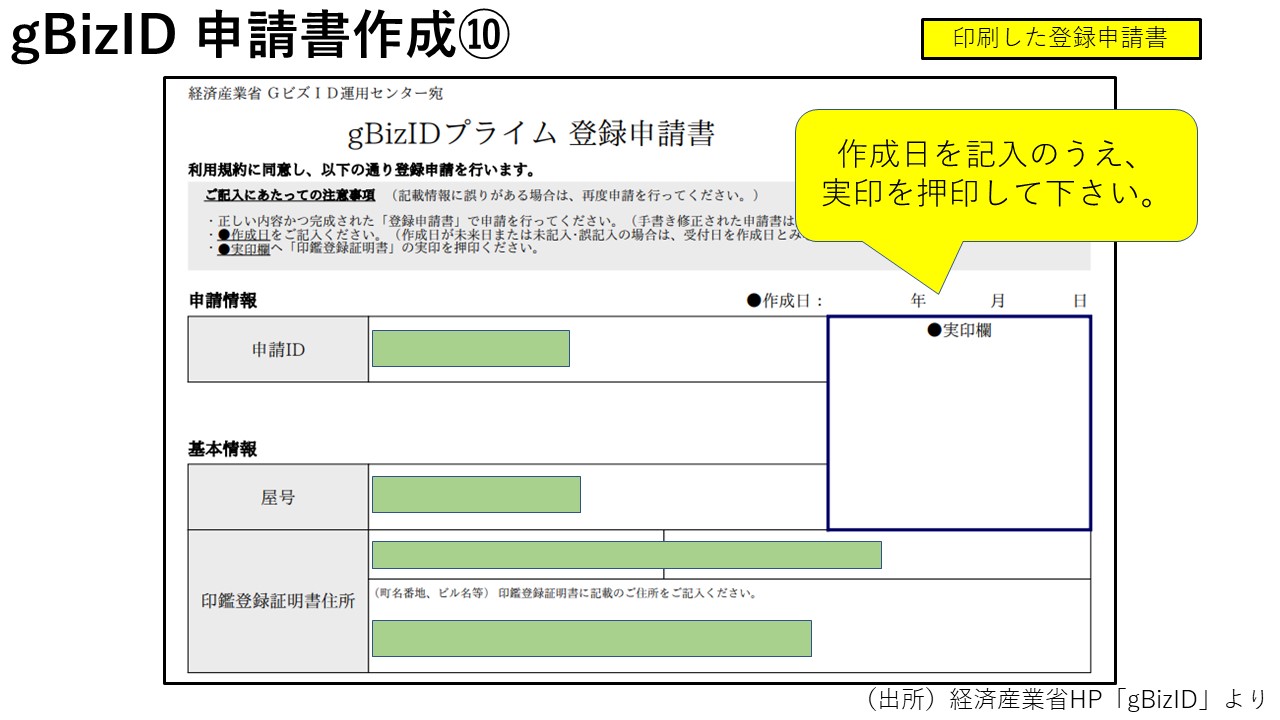 印刷した「登録申請書」に記入・押印します。